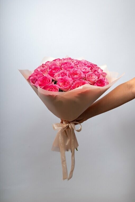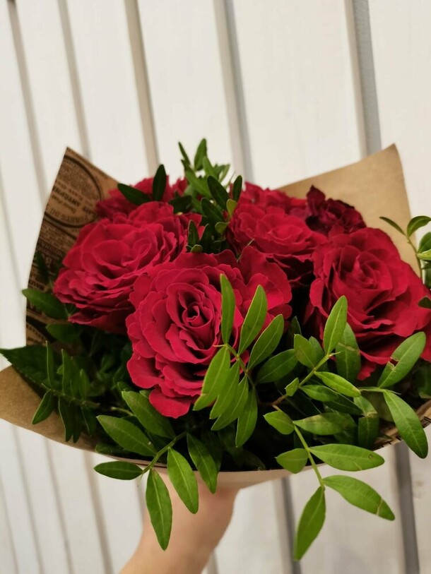 За несколько недель договаривались об монотонном букете в конкретном цвете, оговаривалось несколько раз. В итоге в день доставки скидывают исходный букет, с просьбой о том, как договаривались - сказали, что 5 цветов одного цвета нет в наличии, поэтому сделали как на фото. Было неприятно, так как рассчитывала именно на тот букет, про который договаривались, за это снимаю балы. Само качество хорошее, доставка быстрая.