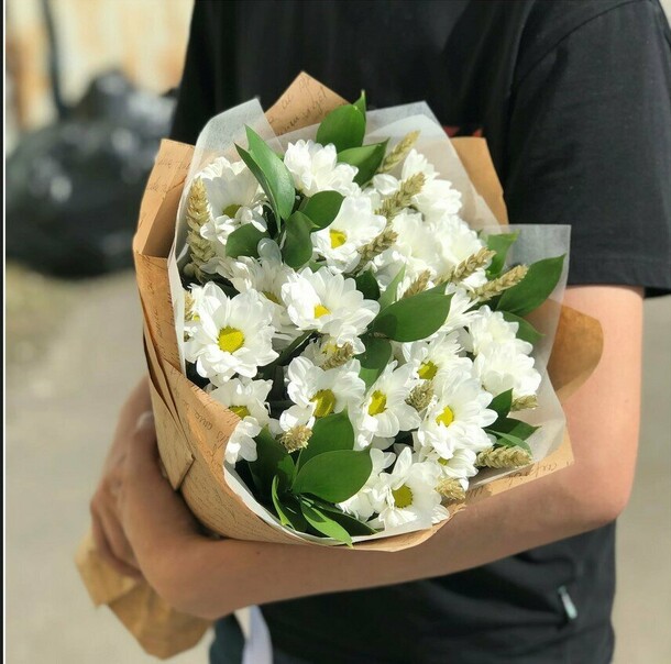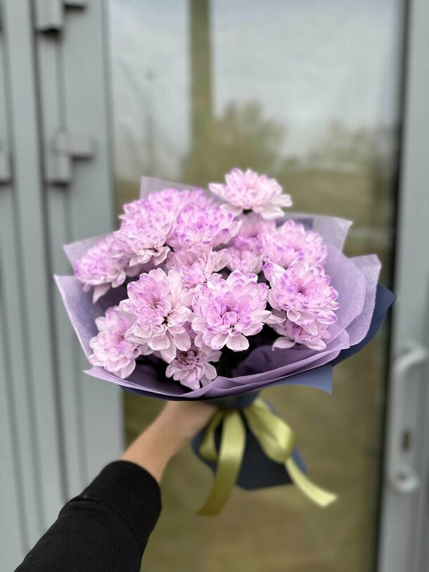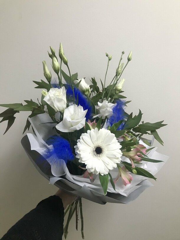 Приятный букет. Очень быстрая доставка (при выбранном интервале с 10 до 11, в 10 курьер был уже у двери)