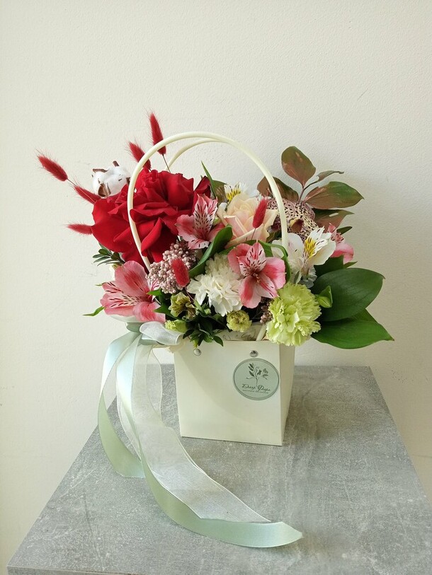 Отличная композиция и качественный сервис. Весь заказ онлайн с учётом отложенной датой доставки. Вопросы решали через чат. Цена-качество!!!