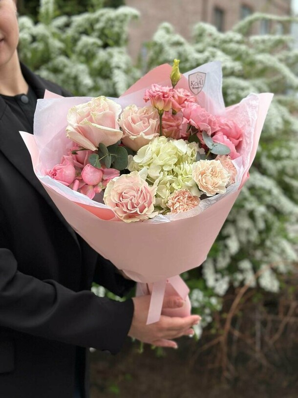 В целом все отлично - качество букета и сервис. Но было небольшое разочарование, что цвет цветов в готовом букете вообще не совпал с фото в карточке... Ожидала бледно-розово-сиреневатые, по факту - ярко-розовые... За это минус звезда по соответствию заявленному
