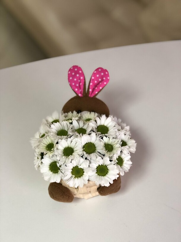 Заказываю зайчика второй раз, очень довольна быстрой доставкой и милой композицией. Большое вам спасибо !