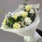 Заказывала доставку из другого города. Букет очень красивый. Курьер вежливый. Сервисом очень довольна