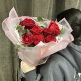 Букет из 7 красных роз эквадор 50 см в упаковке, арт: 3106