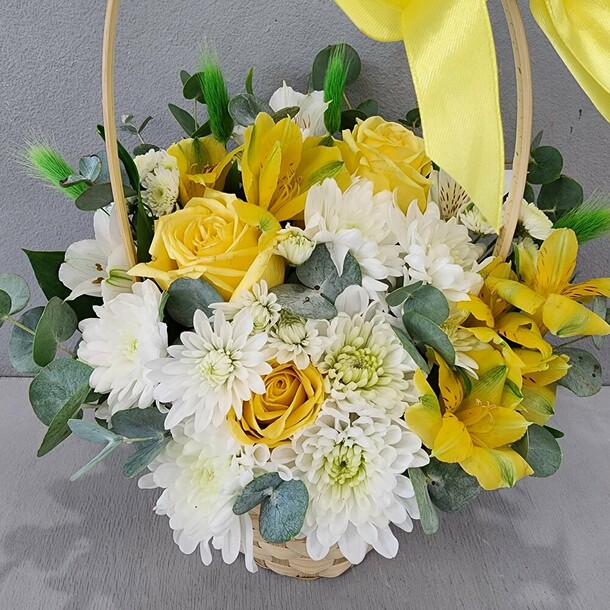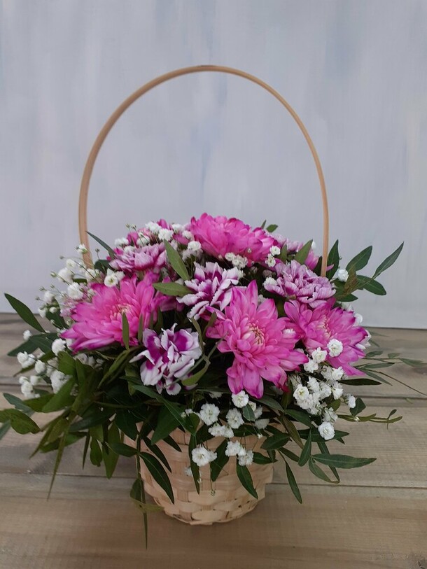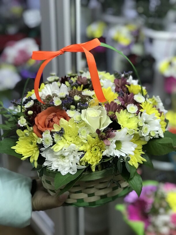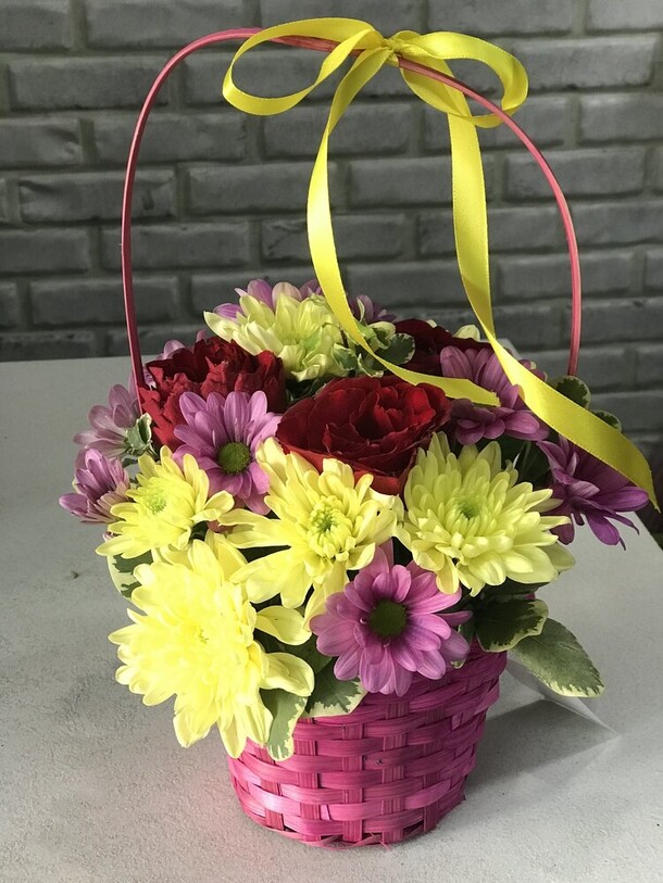 Корзинка получилась достаточно милой и красивой - цветы свежие и приятно пахнут.