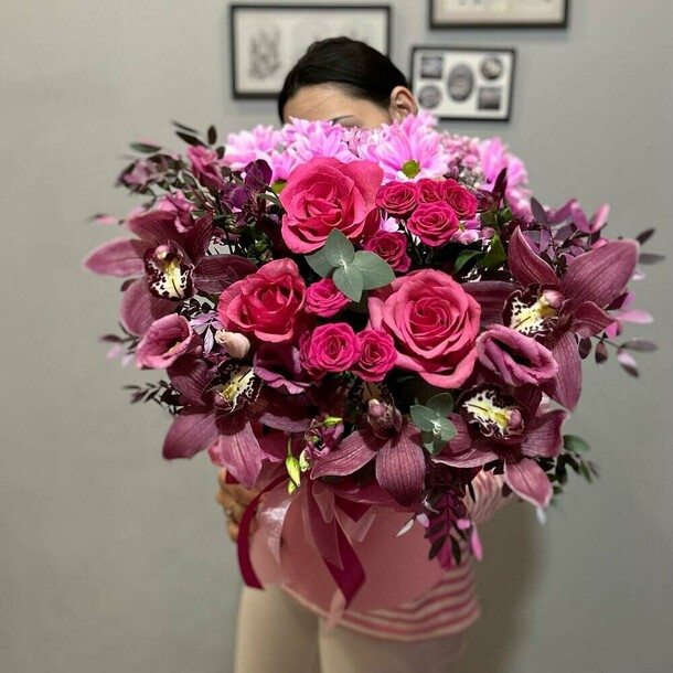Красивая композиция, превзошла мои ожидания. Получатльница была очень рада таким необычным цветам