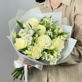 Букет белые розы и альстромерия