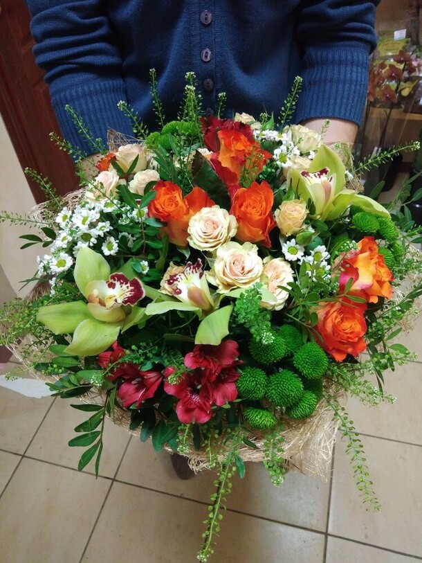 Все очень замечательно. флористы помогли собрать чудо букет. доставиои вовремя. видно работу профессионалов. спасибо всем.
