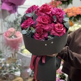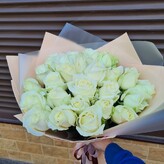 Доставили в срок, проблем не было. Фото прислали перед отправкой. Вложили открытку поздравительную. Если бы была опция на сайте открыток со своей надписью, что бы отлично. Фото букета без упаковки.
