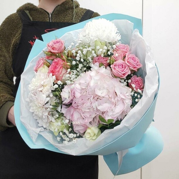 флористы сделали просто замечательный букет, отличный вариант чтобы поднять настроение девушке)