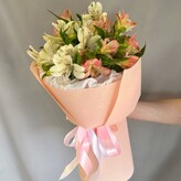 Доставили в срок, проблем не было. Фото прислали перед отправкой. Вложили открытку поздравительную. Если бы была опция на сайте открыток со своей надписью, что бы отлично. Фото букета без упаковки.