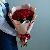 Букет красных роз из 15 шт, красивый букет роз 50 см, букет живых цветов, Россия, арт: 1605-1