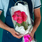 Букет из 5 малиновых роз эквадор в оформлении, 1602