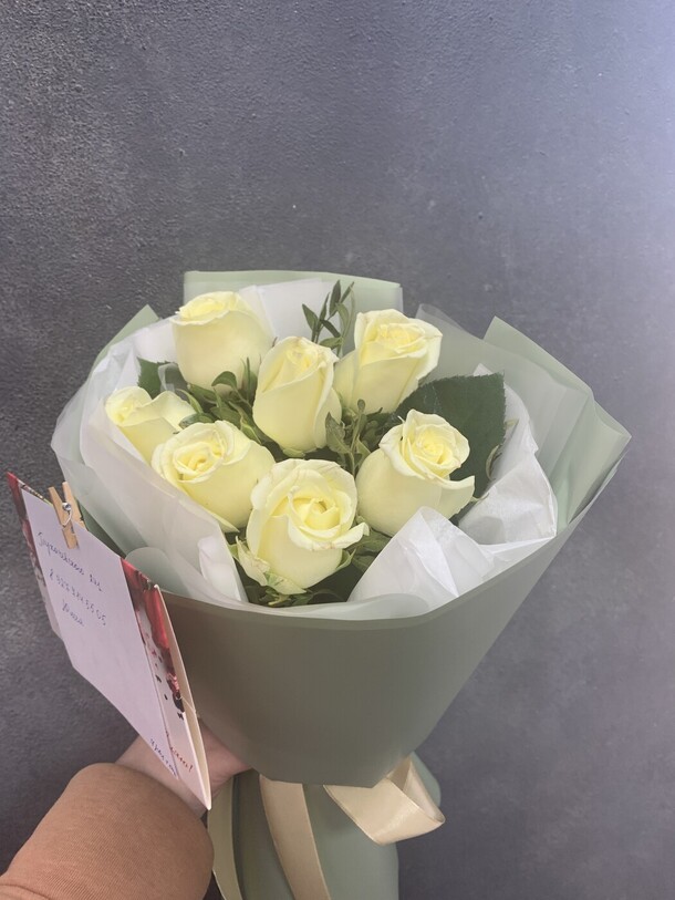 Букет как на фото, все соответствует, собрали и доставили быстро, записку приложили, спасибо!