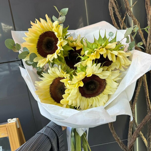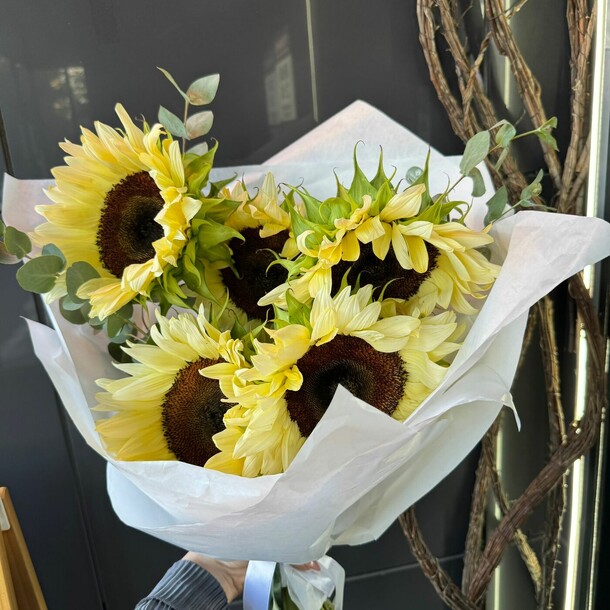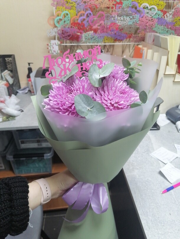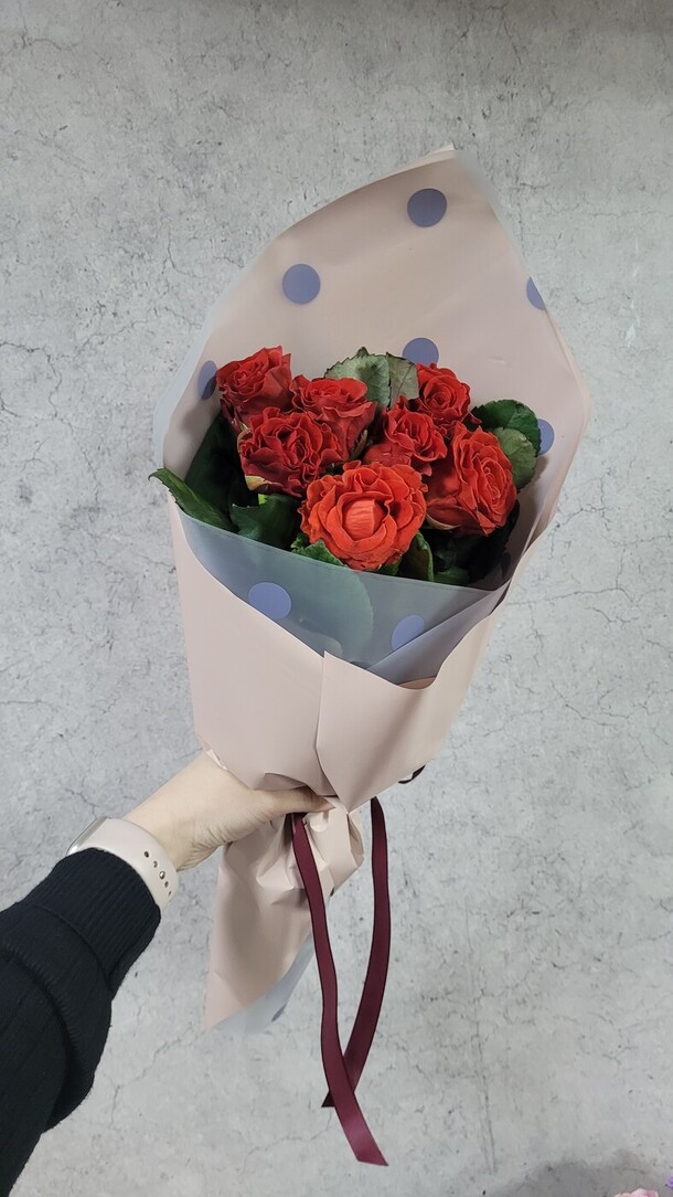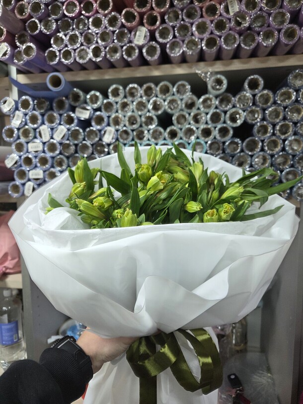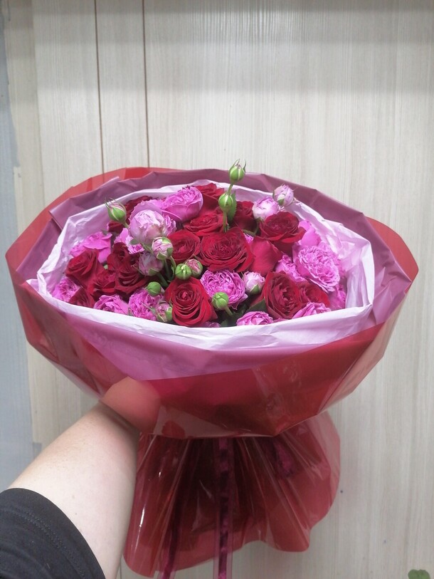 Букет приехал сплющенный, вообще без какой либо упаковки (а на улице -20). Цвет бумаги другой, не как на карточке товара, о замене не сообщали заранее. Цвета не понравились, отправили фото и сразу же отдали курьеру.