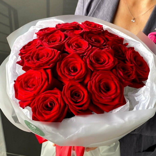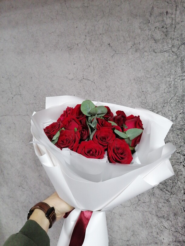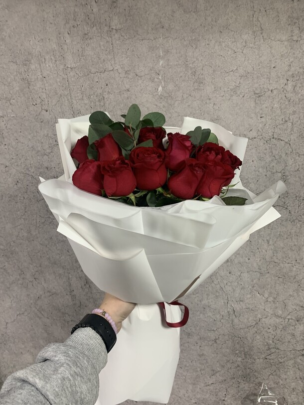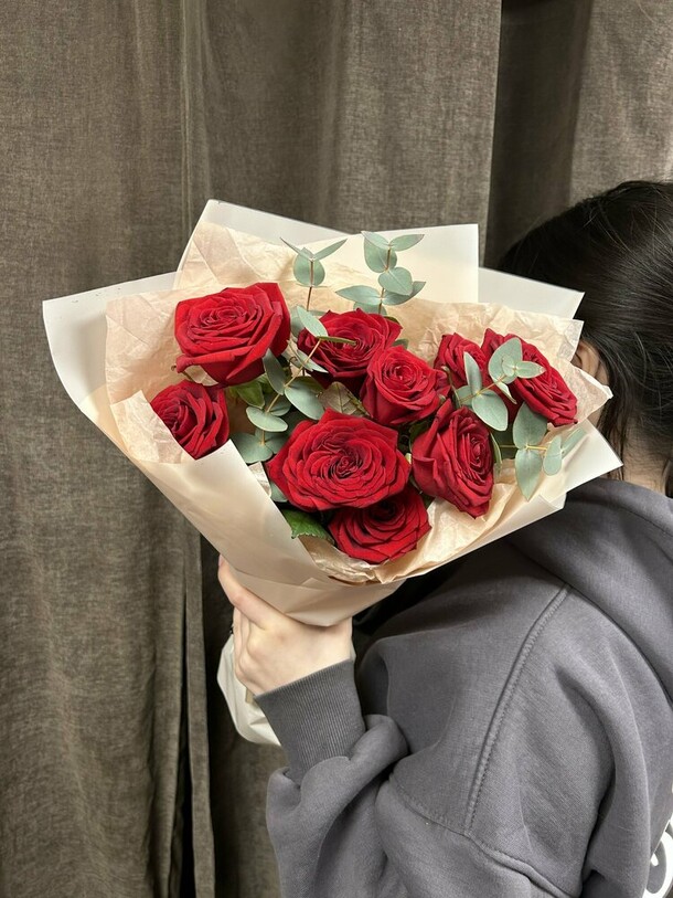 Заказывала букет красных роз с эвкалиптом, как указано в названии. К сожалению красных роз не было и их заменили на оранжевые. Они визуально меньше красных на фото. Об эвкалипте вообще забыли. Его нет. За что я платила!?