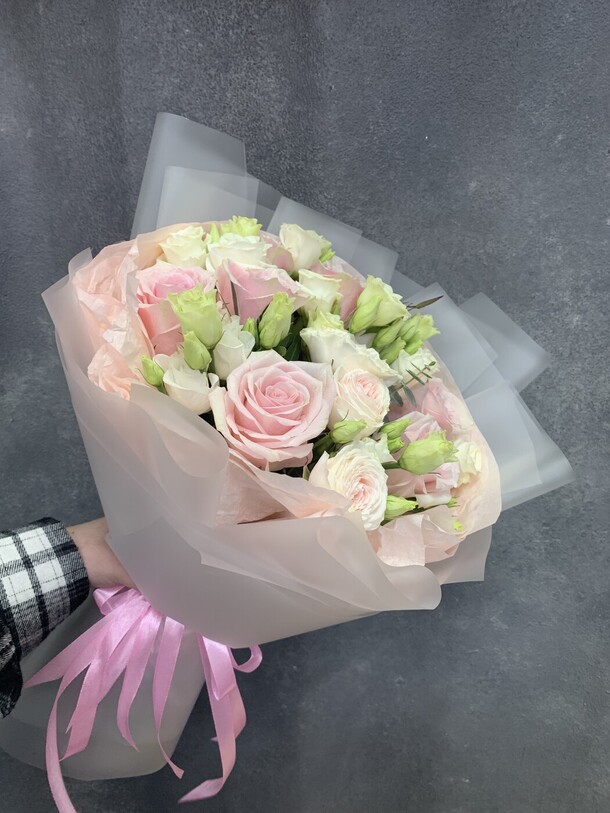 Чудесный, нежный и красивый букет! Все особые пожелания при составлении букета были учтены! Большое Спасибо!!!