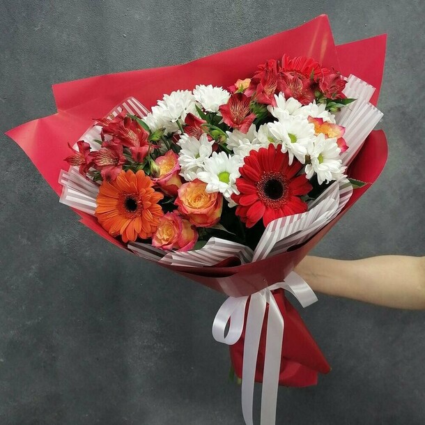 Отличный красивый букет, хороший сервис, доставили вовремя! Очень довольны!