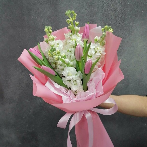 Немного переживала по времени доставки, ТК заказала раннюю доставку, но все сложилось удачно 👍 спасибо.Букет чудесный.