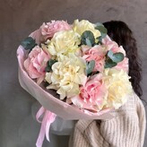 Букет с воздушным диантусом и ароматным эвкалиптом