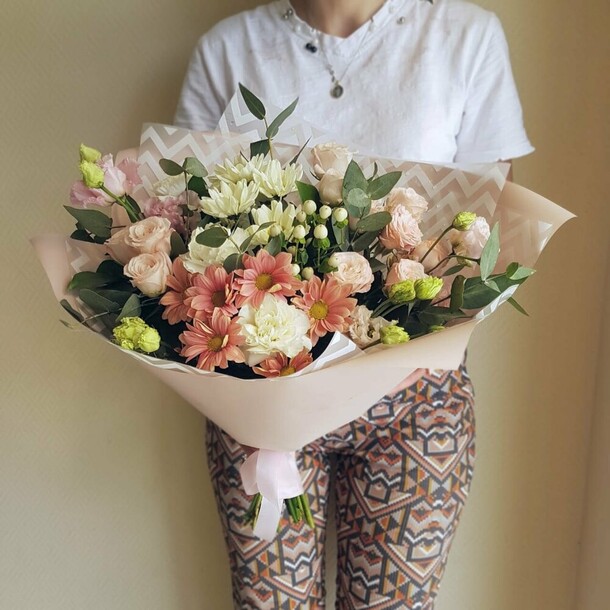 Прекрасный букет, цветы свежие. Перед доставкой прислали фото букета для согласования. Надеюсь, что букет простоит долго 😊