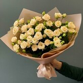 Свежие цветы, как на фото, быстрая доставка, вложили записку по просьбе, спасибо! Цена и качество соответствует, рекомендую! На фото букет уже без упаковки :)