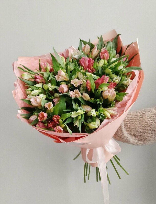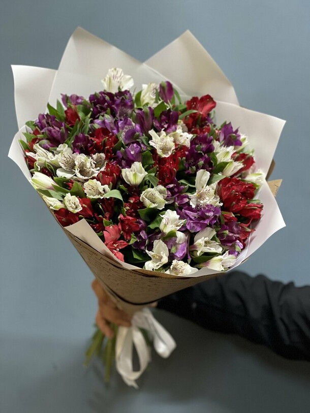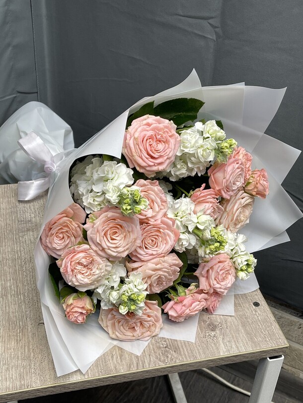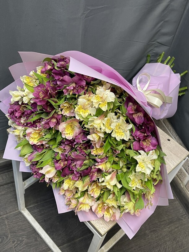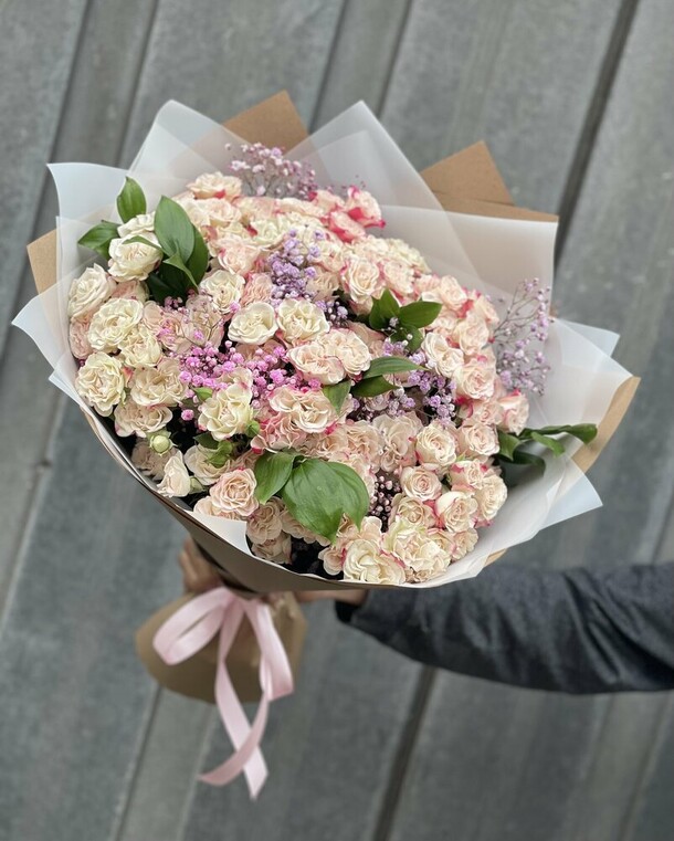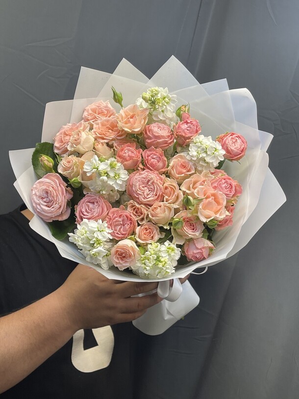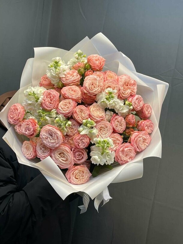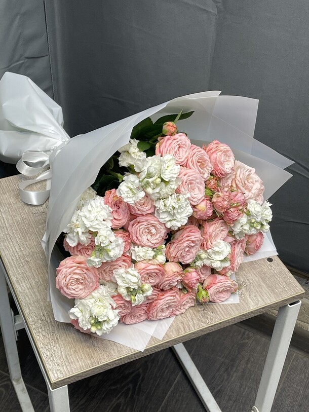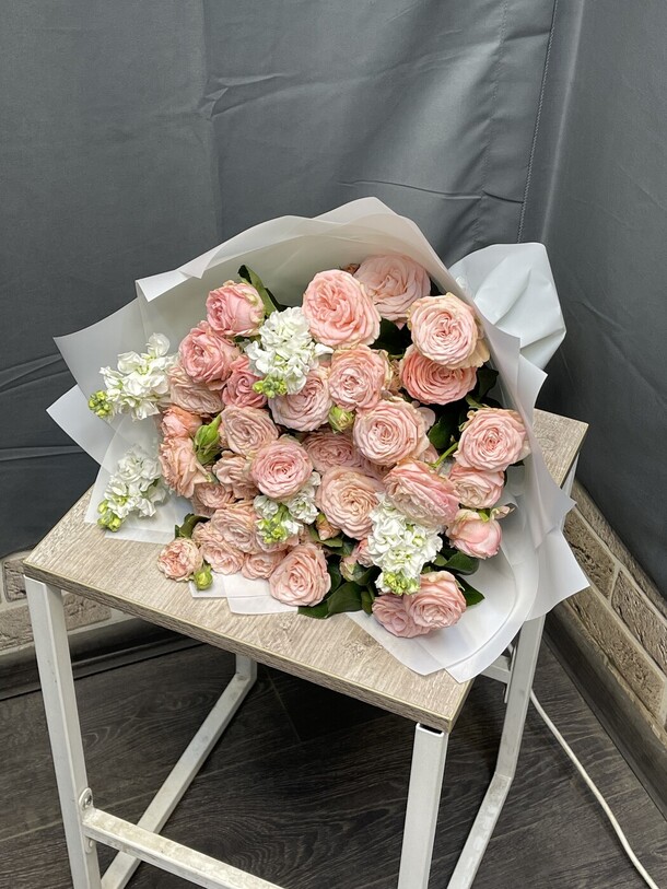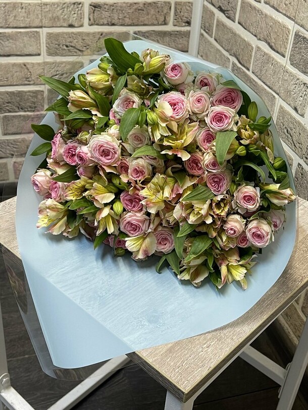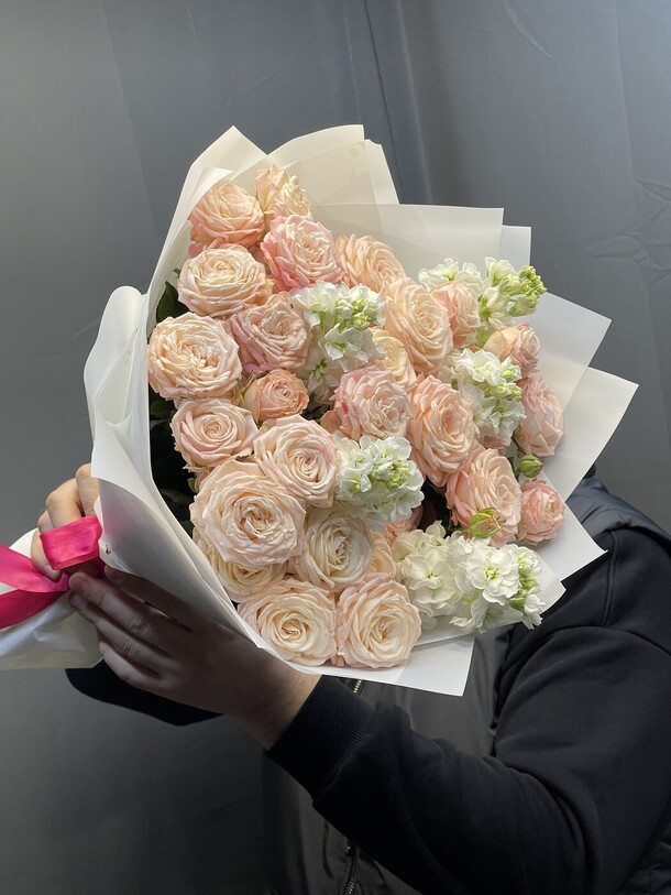 Все цветы завядшие, матиоллы вообще сухие. У половины роз погнившие лепестки. По внешнему виду этот букет уже у кого стоял мне принесли его вместо того чтобы выкинут. Отвратительно впечатление от этого букета.