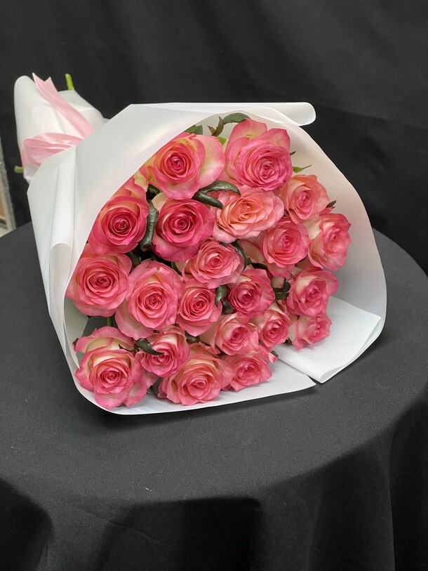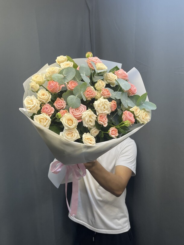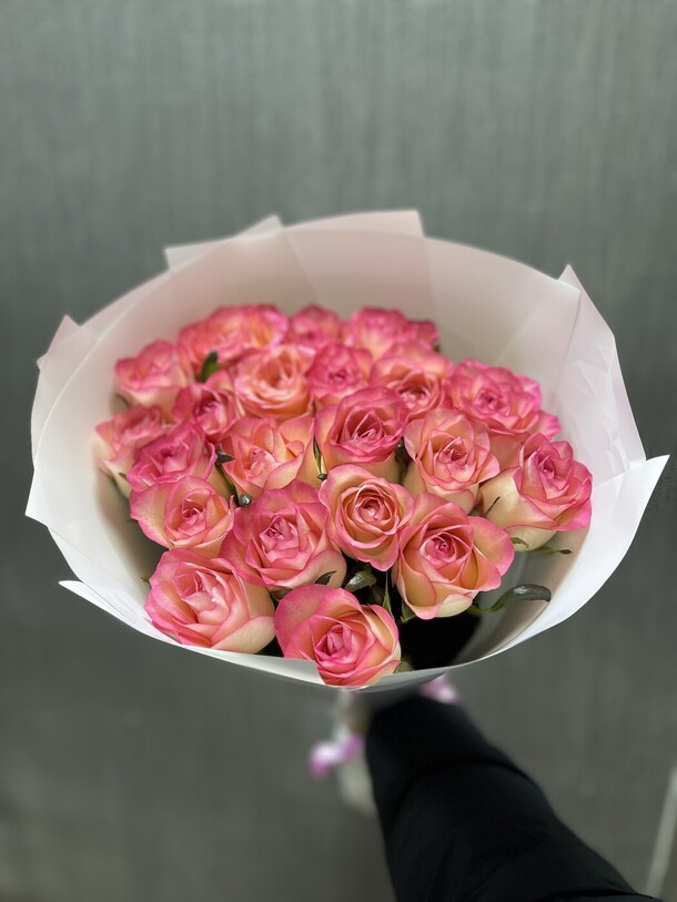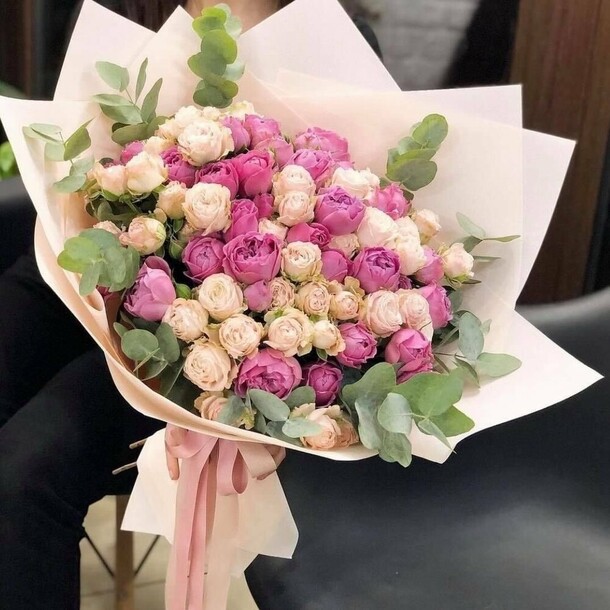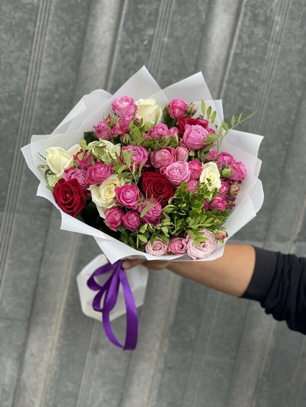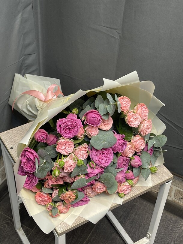 В итоге букет получился разноцветным-свежие розовые, большие и не свежие,бледные и маленькие.