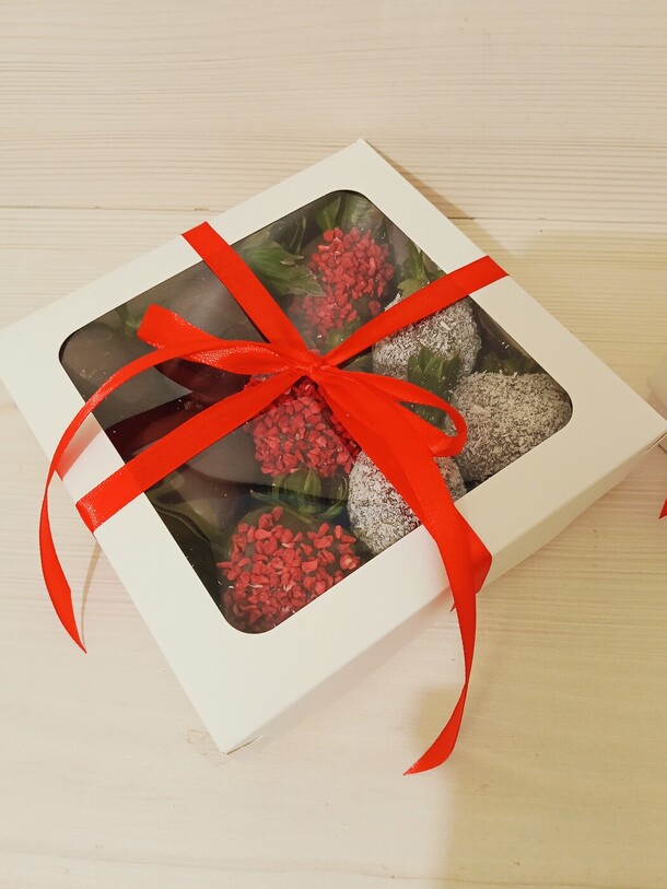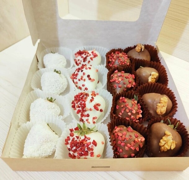 Но здесь возможно виноват курьер.В целом заказ собран прекрасно, клубника свежая и очень вкусная.