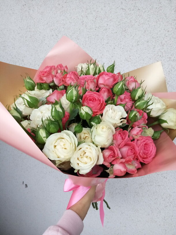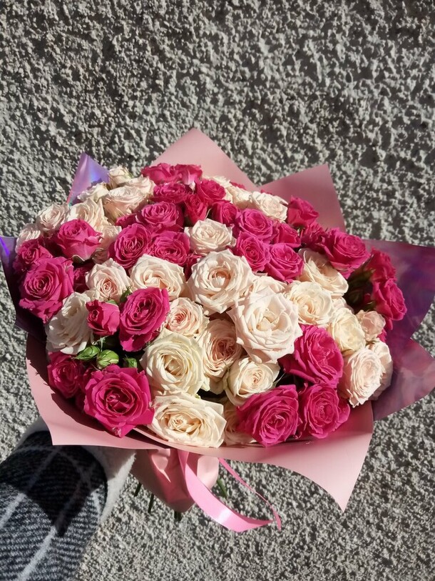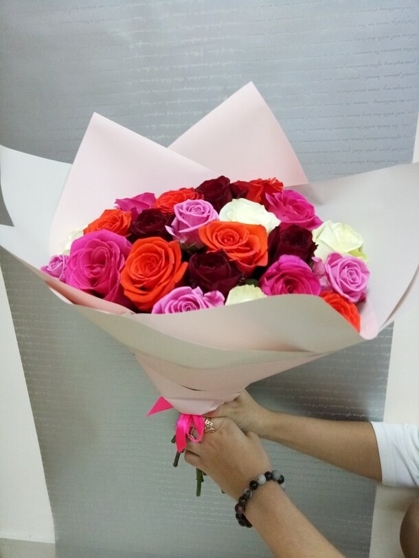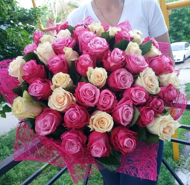 Здравствуйте. Заказ делали с ЯНАО. Букет достаточно быстро доставили, сам букет красивый. Но в описании нигде нет уточнения цветовой гаммы ( НЕ совсем то, что на фото сайта). Хотелось бы чтобы добавили на сайт информацию, что возможны корректировки оттенков флористом. Нам пришли розочки розово с жёлтым оттенком. Возможно изначально из-за того, что мы не уточнили по мах детали заказа. В остальном всё очень здорово.