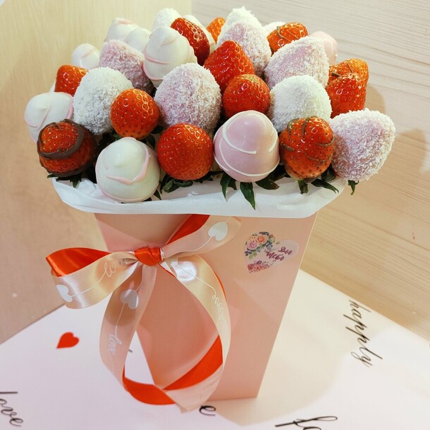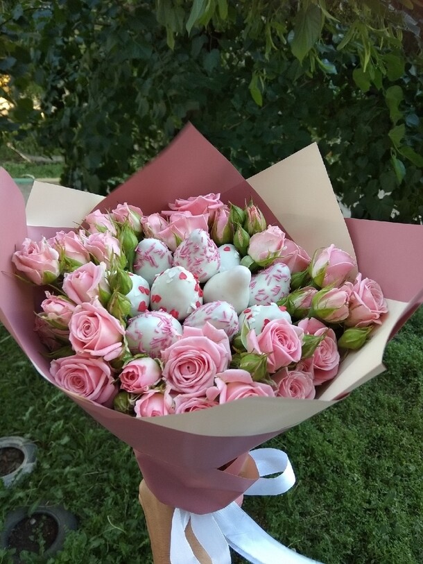 Спасибо большое за Вашу работу!!!! Именинница была в восторге и от цветов и особенно от вкусной клубники в шоколаде)) Процветания Вашей фирме!!!!