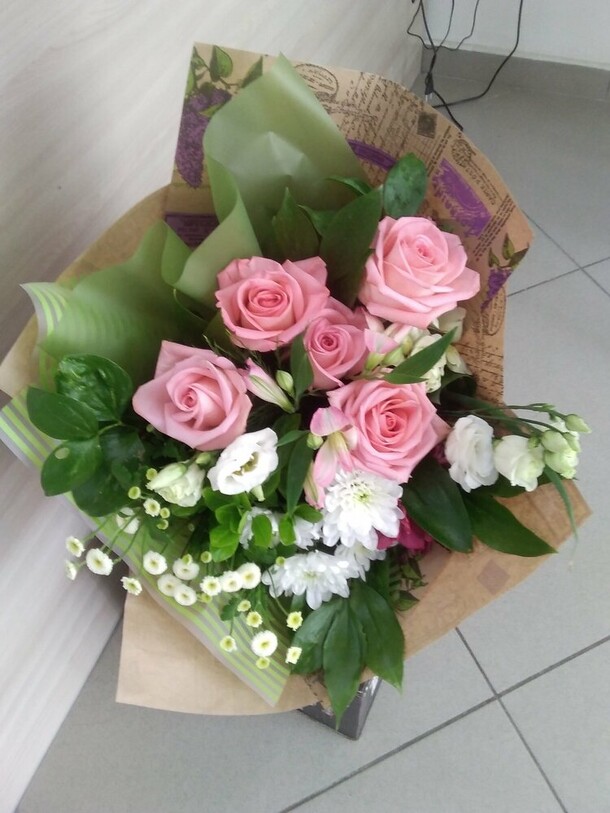 Прислали фото собранного букета и фото букета на фоне адреса доставки.