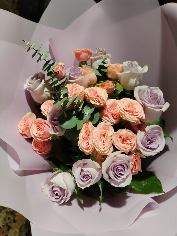 Мама обычно не любит роза, но от этого букета в восторге! Благодарю за отличное настроение у именинницы.