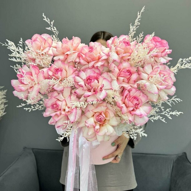 Великолепный букет, реально большой, розы свежие и великолепно пахнут.