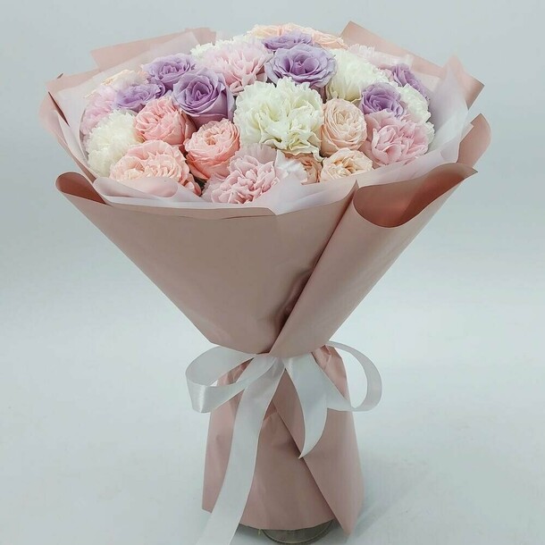 букетик красивый. доставка опоздала на пол часа, но для меня это не было критично. лучше заказывайте чуть заранее, что ваши планы не соравились.