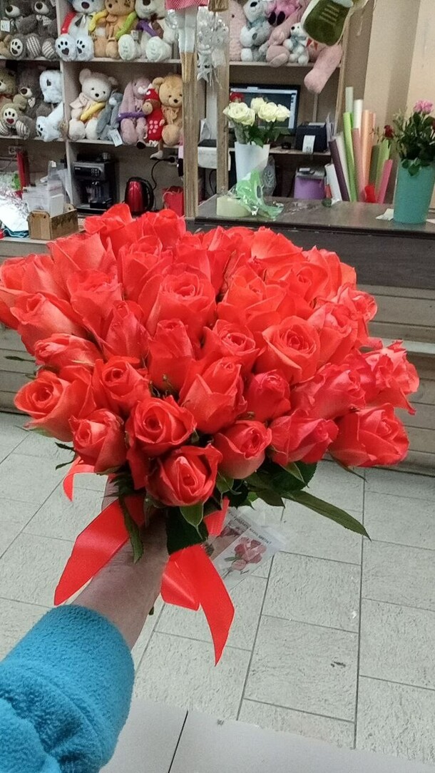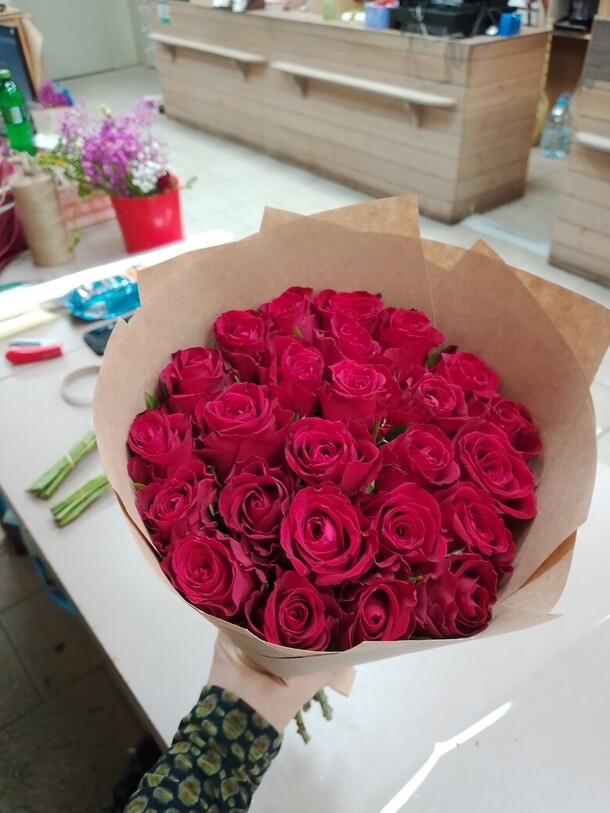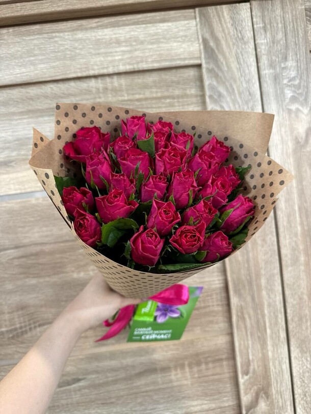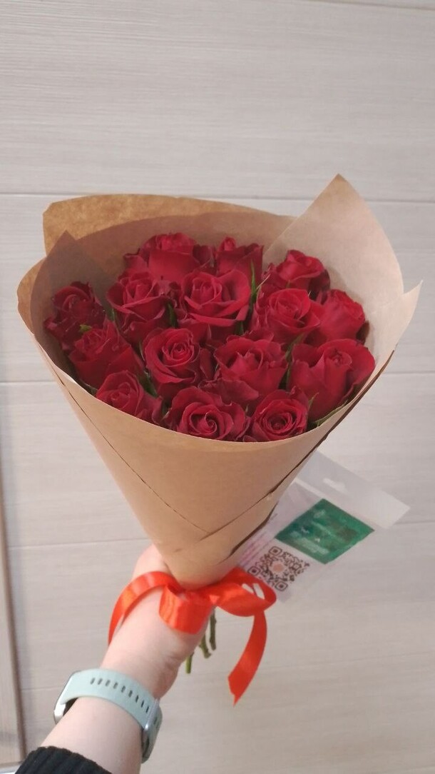 Очень красивый букет ароматных красных роз! Цена соответствует качеству. Единственное, заказ задержался в пути из-за пробок на полчаса, а букет очень ждали к определенному времени. Хорошо, что курьер позвонил и предупредил, за что отдельное спасибо!