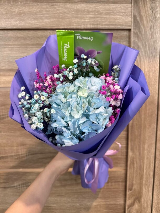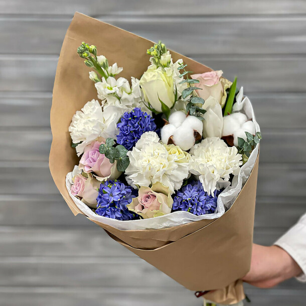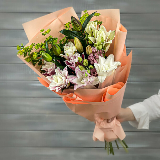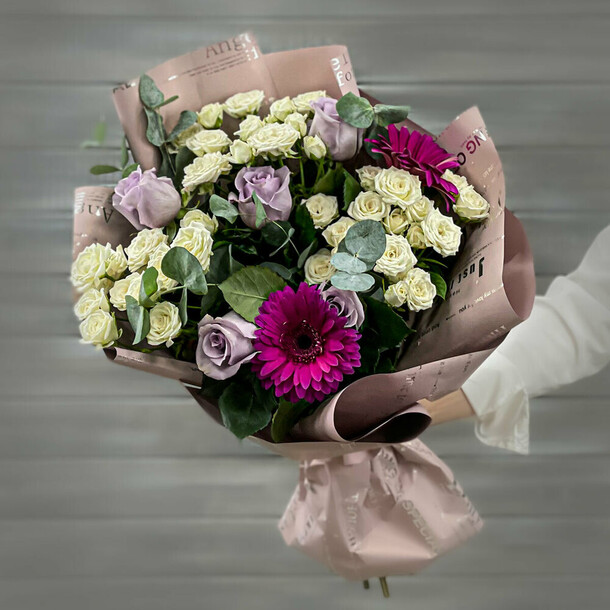 Вместо радости букет принёс огромное разочарование. Во-первых, в букет не положили папоротник. Когда я на это указала, сказали, что папоротника нет, вместо него добавили больше гипсофилы. Спрашивается, зачем?! Зачем доп.гипсофила, если нужна была зелень, оттеняющая пестроту цветов? Кроме того, без согласования заменили обёртку, вместо светлой с сиреневым дополнением сделали тёмно-сиреневую. В общем, букет совершенно не такой, как был заказан. Это моя первая и последняя покупка в этом магазине!