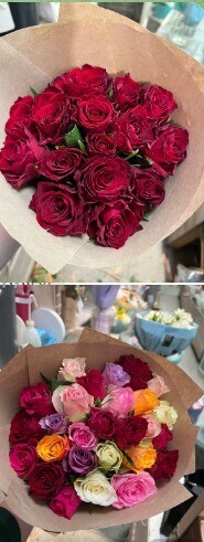 Один букет нормальный. Второй - ужасный. Цветы, очевидно, не свежие. Лепестки с бутонов оборваны так, что нечему осталось распускаться. Полное разочарование!