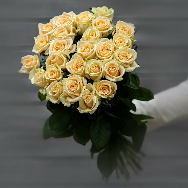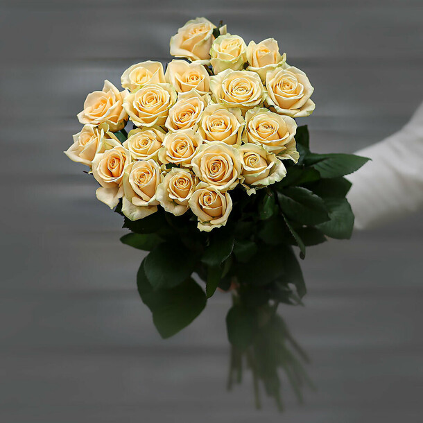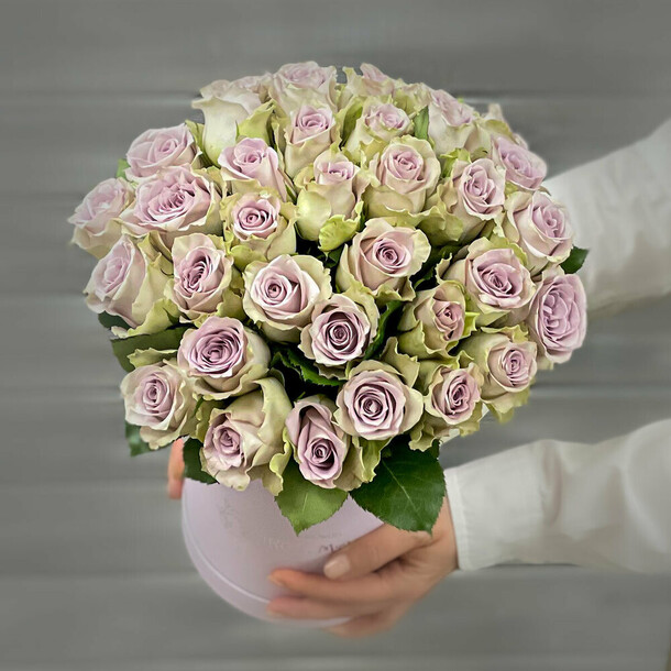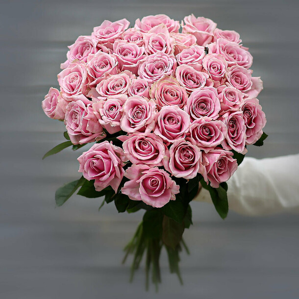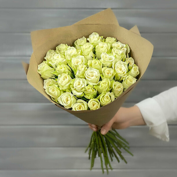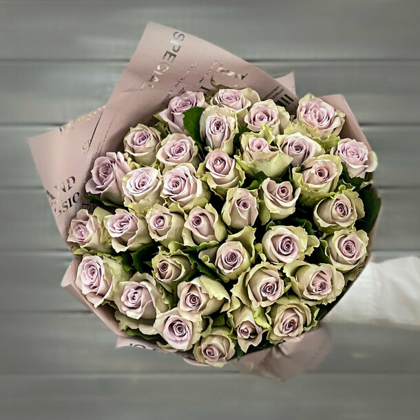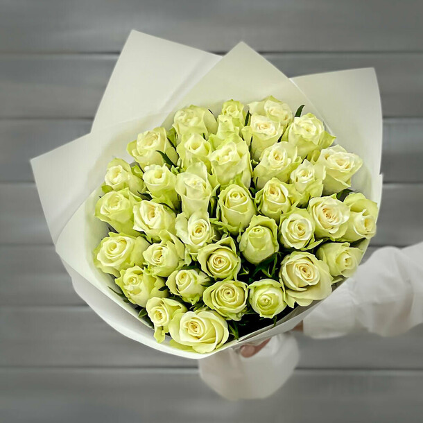 Розы свежайшие, очень нежные. С учетом того, что магазин при составлении букета из подрезает, высота 37 см