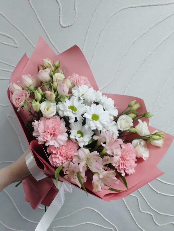 Всё очень понравилось, кроме доставки. Привозят к подъезду, букет сам из машины забери. Только это омрачило впечатление от сервиса.