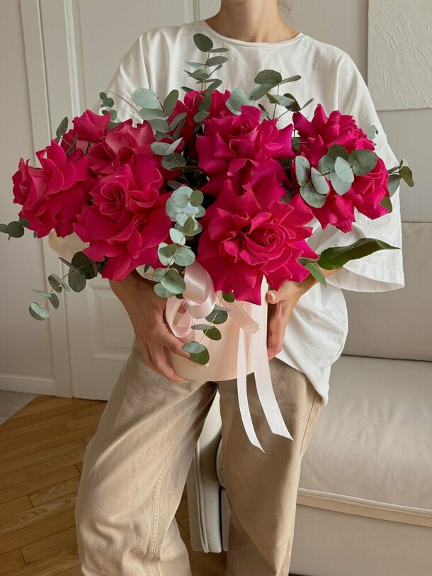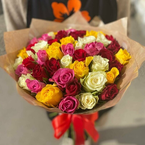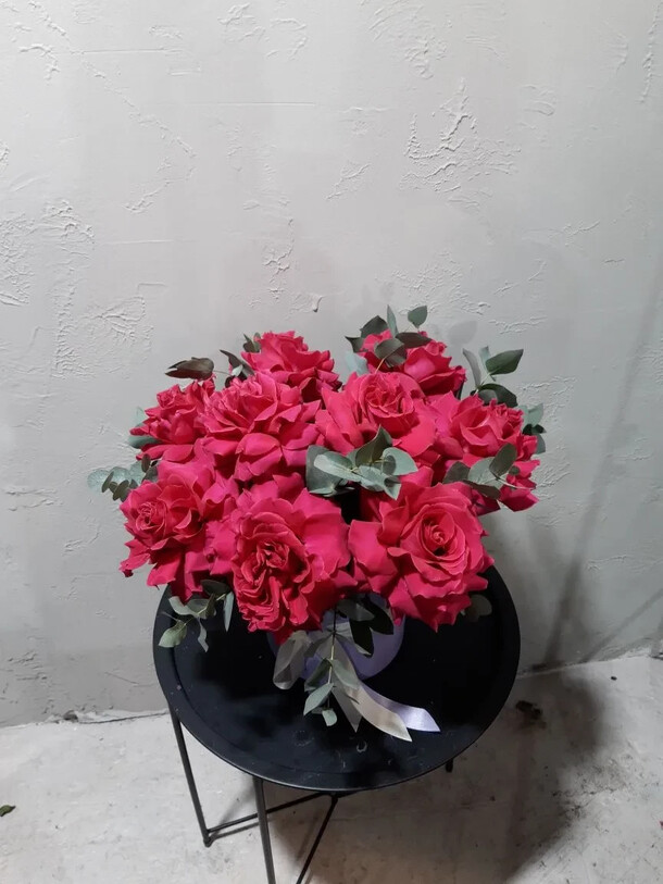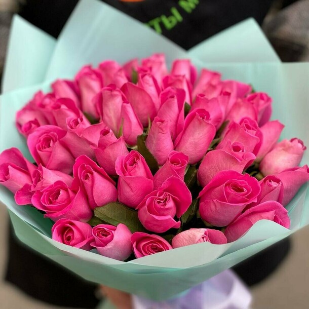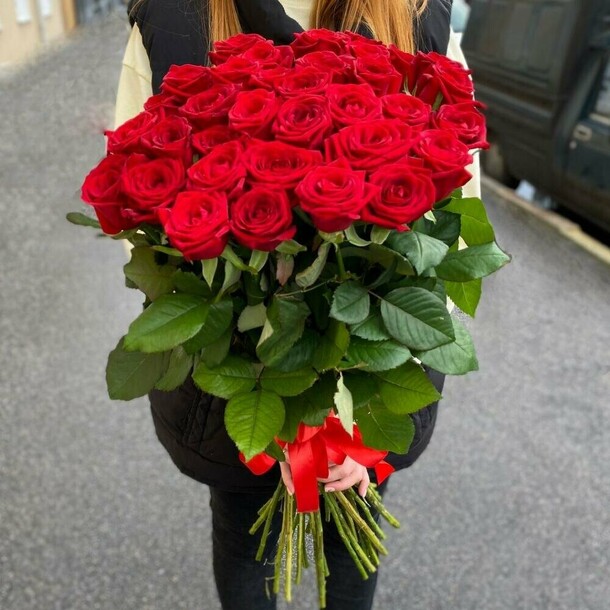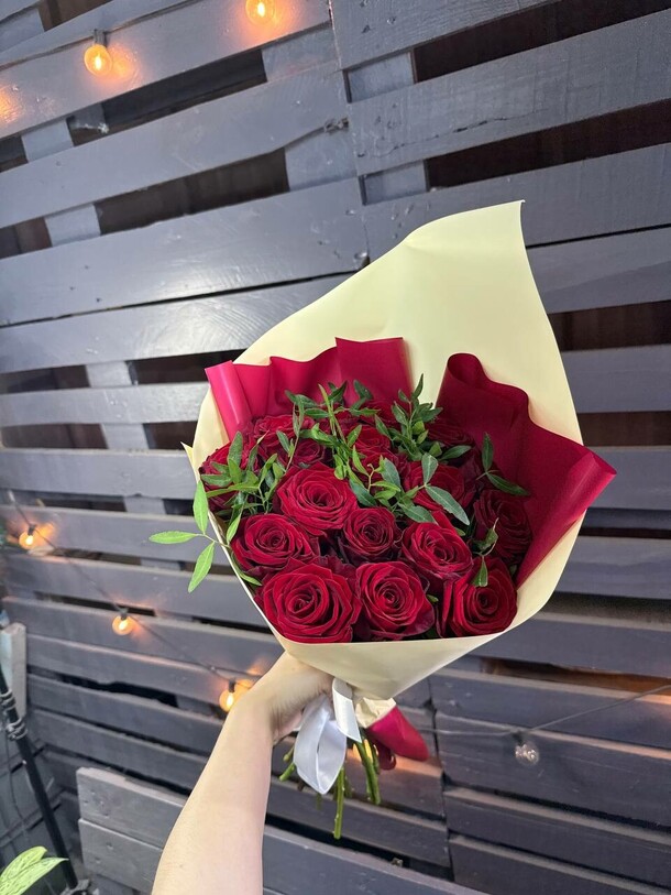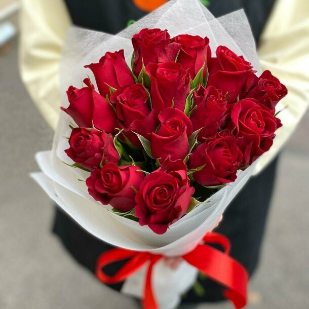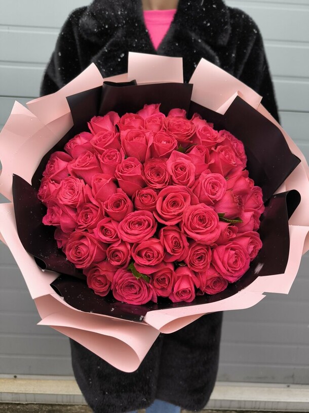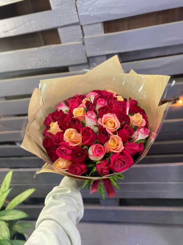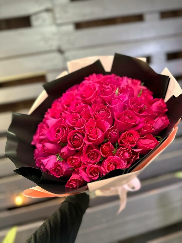 1)букет чуть не доставили на день раньше. пришлось звонить и еще раз проговаривать дату доставки. на предварительном фото (перед отправкой на день раньше) были ярко-красные розы, никак не бордовые, как на заявленном фото.