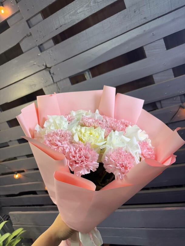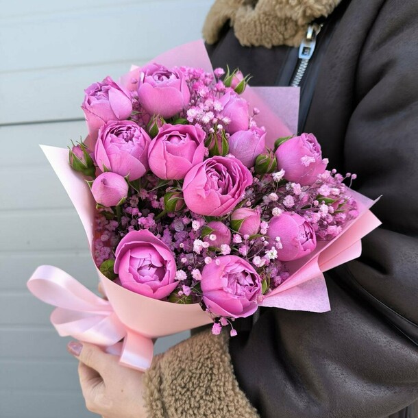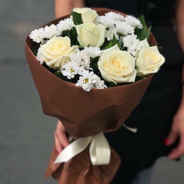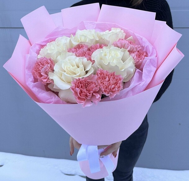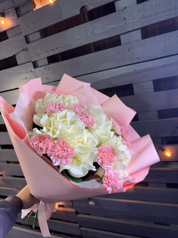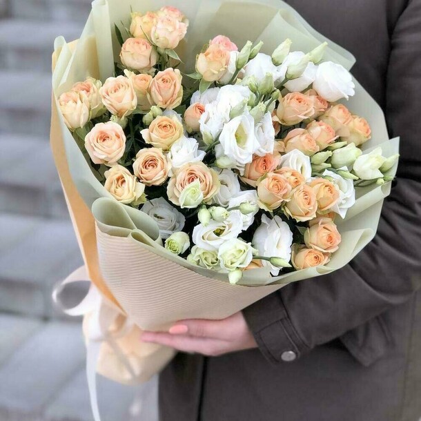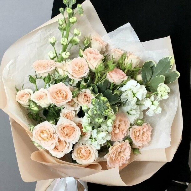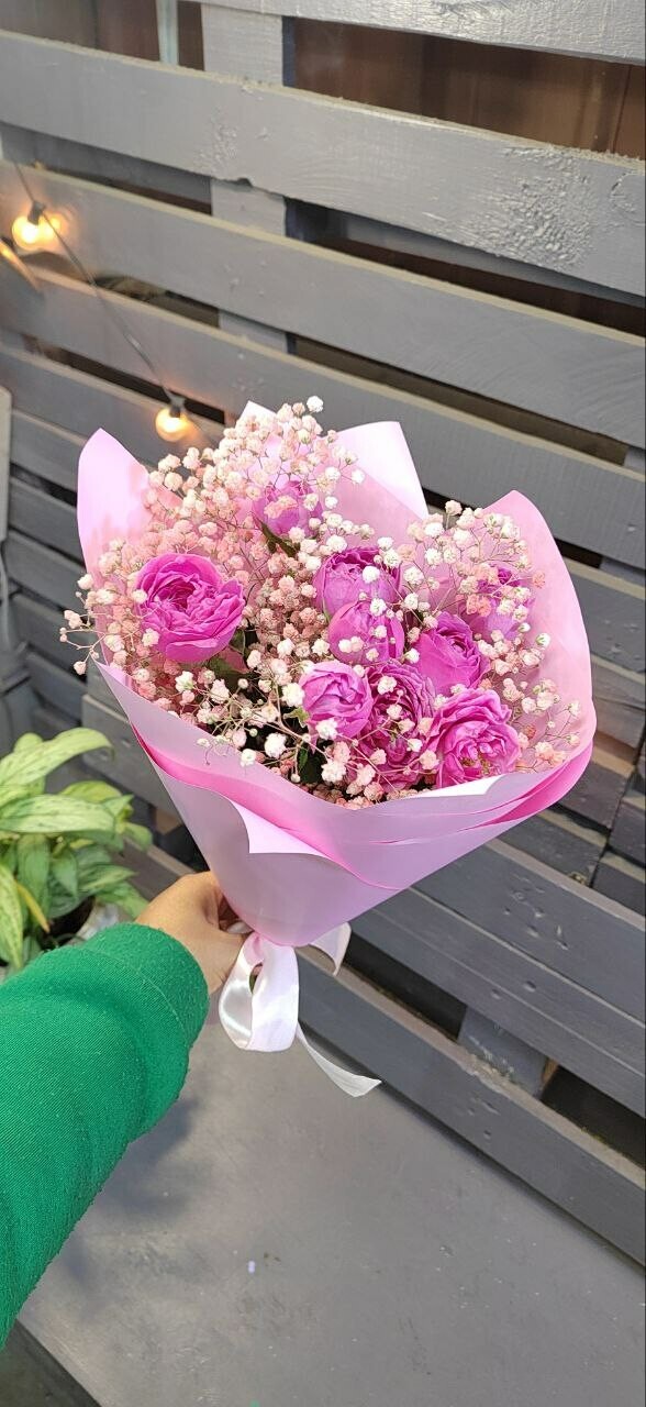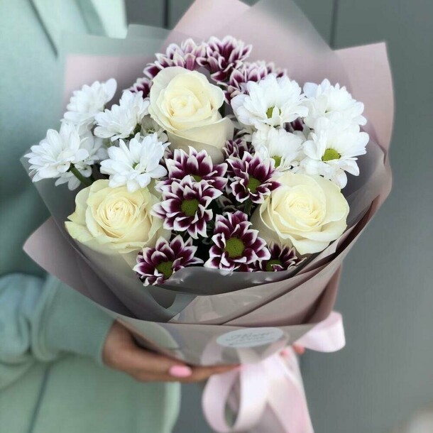 Очень красивый нежный букетик! Запал в душу. Единственный минус - на фото кажется большим, а в жизни это мини-букет))
