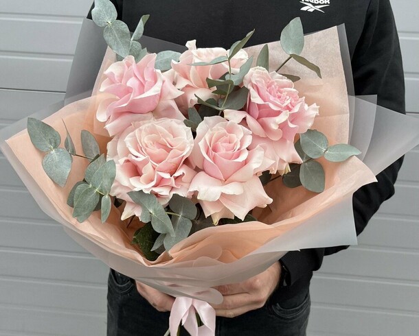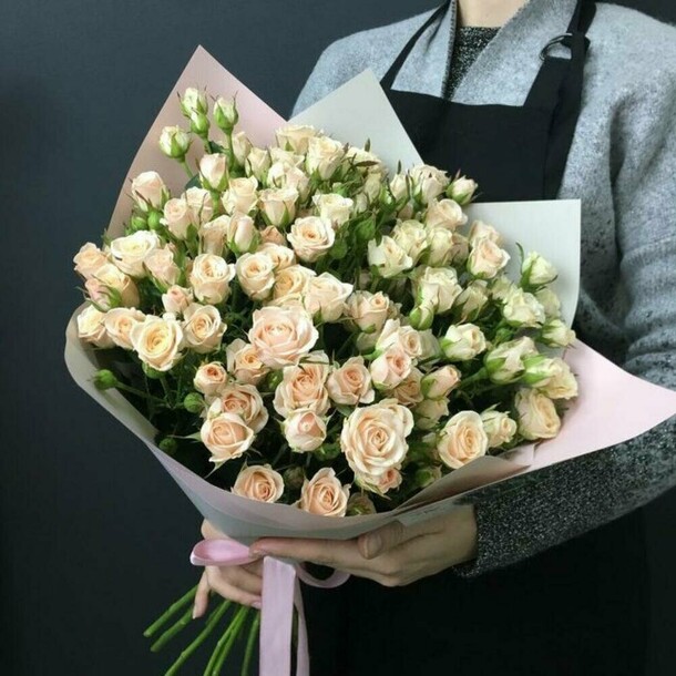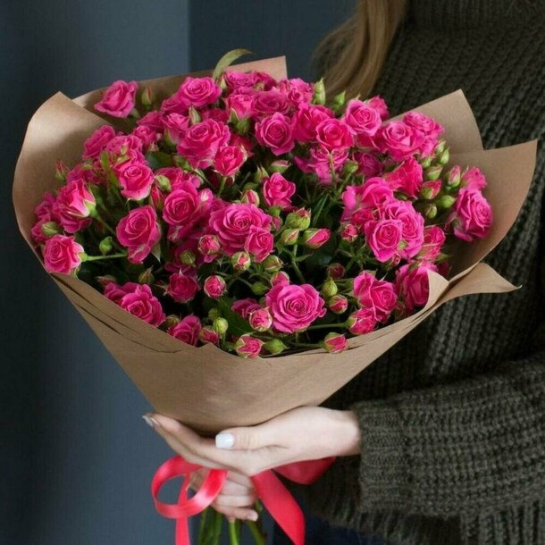 Букет на картинке и который привезли - совсем разные. Привезли какой то вялый букет с малюсенькими розами
