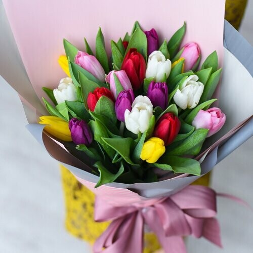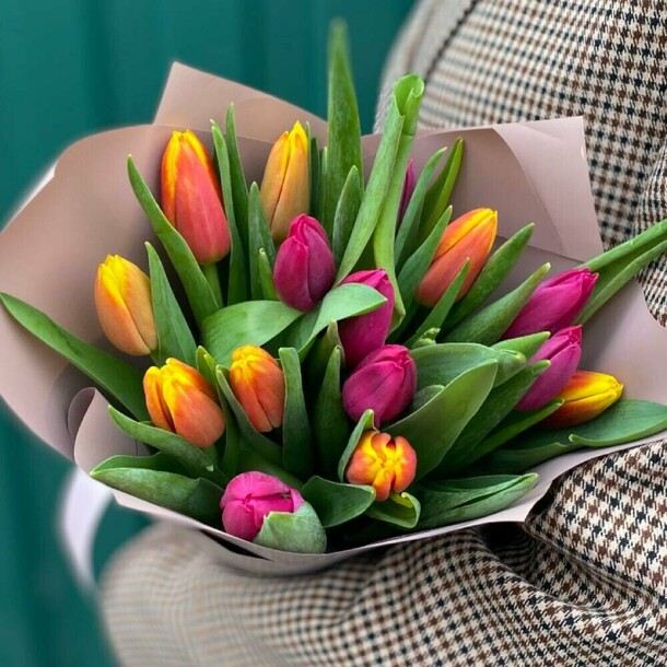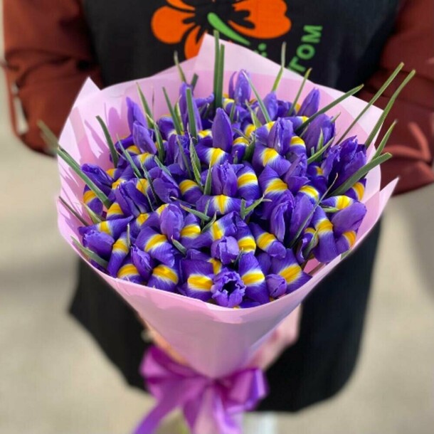 Не соответствует фото. По размеру как 3 тюльпана на 8 марта из ленты.