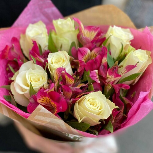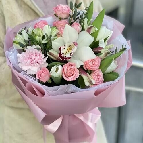 Очень быстро собрали букет и доставили ко времени. Я изначально перепутала день доставки и мне за 2 минуты помогли и все исправили. Букет очень красивый!