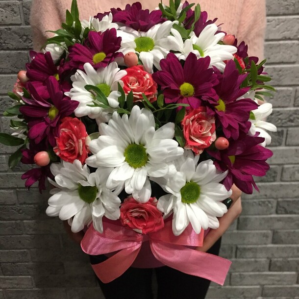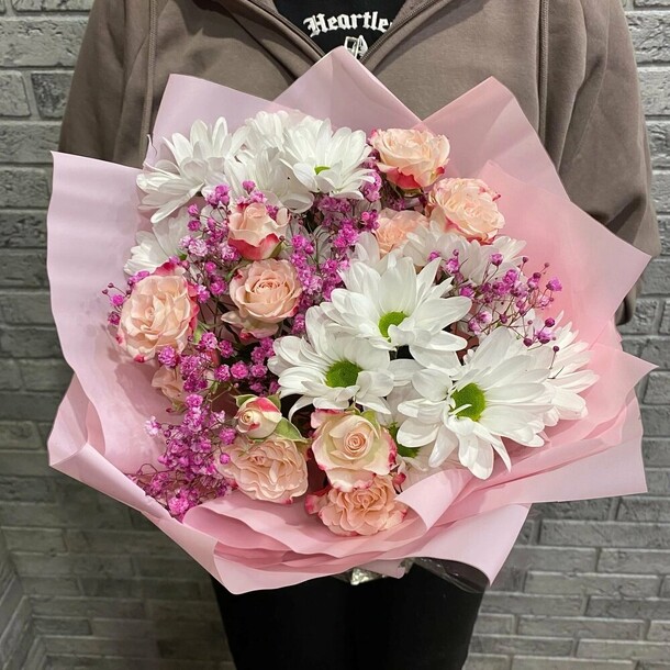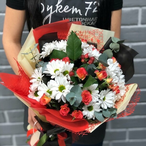 Хорошая доставка,но предаться могу. На картинке были белые ромашки,а доставили другие белые. Поэтому 5- ,в остальном всё хорошо оформлено и в срок.На сайте заказывать удобно.