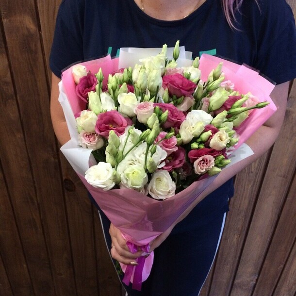 Изумительный букет, девушка была счастлива)) Также порадовала гибкая система доставки, время доставки без проблем сдвинули когда стало ясно, что в запланированные часы получателя не будет на месте. На срезах стеблей был подвязан мешочек с водой. Вобщем ребята сделали все, чтобы цветочки доехали живыми и в удобное для нас время)