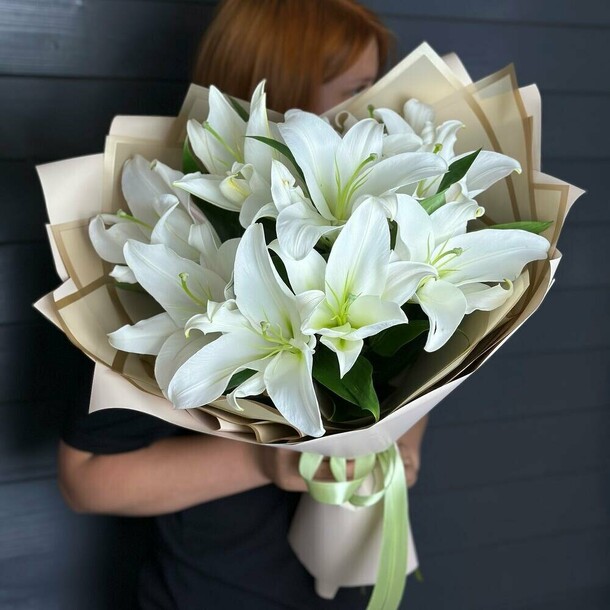 все замечательно. доставка вовремя. никаких лишних звонков - вся информация в чате. слегка разочаровало небольшое несоответствие фото. на сайте - сочетание белых и насыщенно фиолетовых цветов. а привезли белые и чуть сиреневые. не так эффектно смотрится. получился прямо букет невесты. но тому, кому дарили - понравился. а это самое главное. спасибо