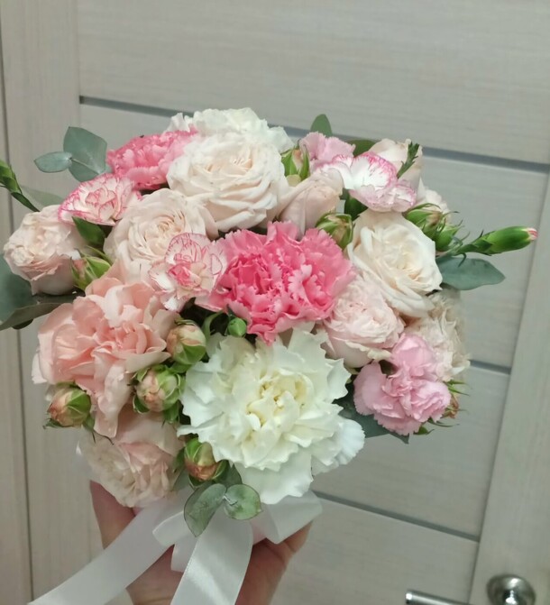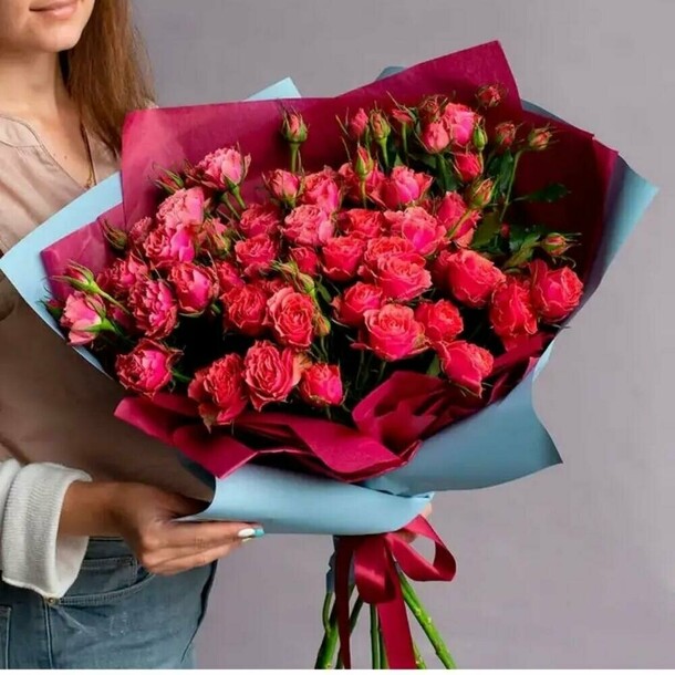 цветы были намного меньше, чем в примере на фото. Половина была уже вялая. С одной стороны цветы были намного ниже, тем самым испортив общий вид букета