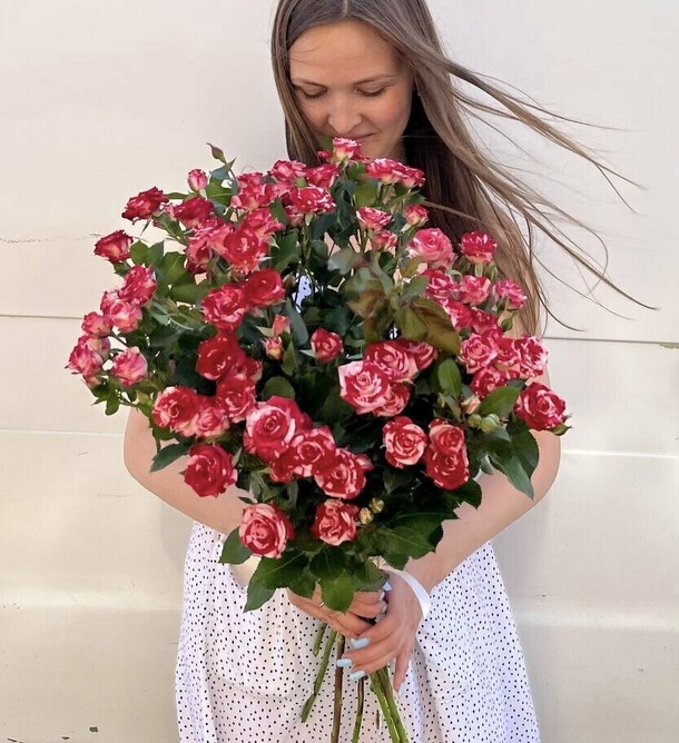 Очень красивый букет! Пышный, со свежими цветами и потрясающим ароматом. Большое спасибо!