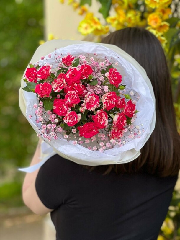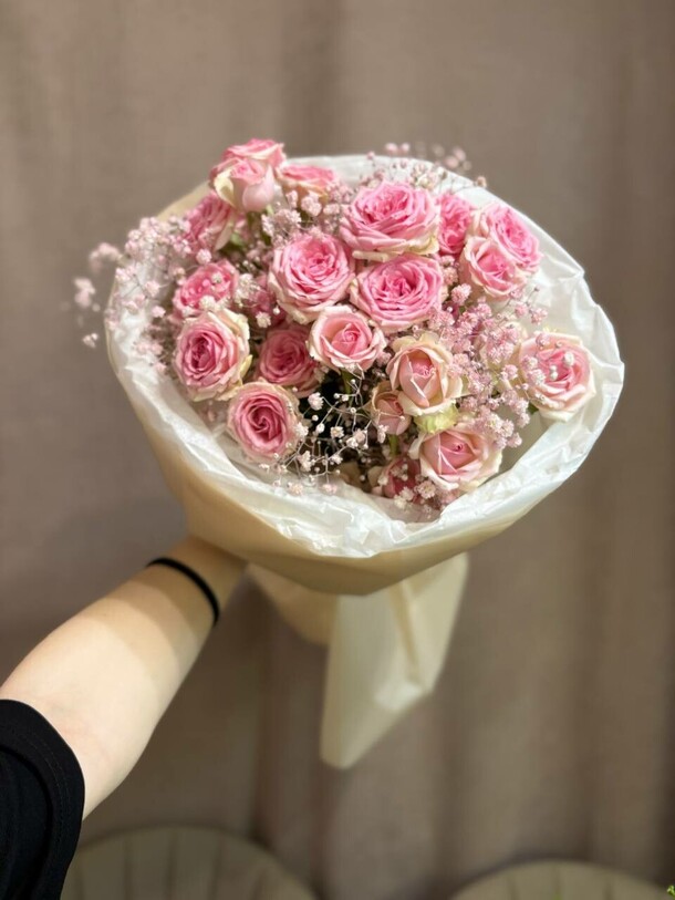 Букет был доставлен вовремя, цветы свежие, хороший сервис